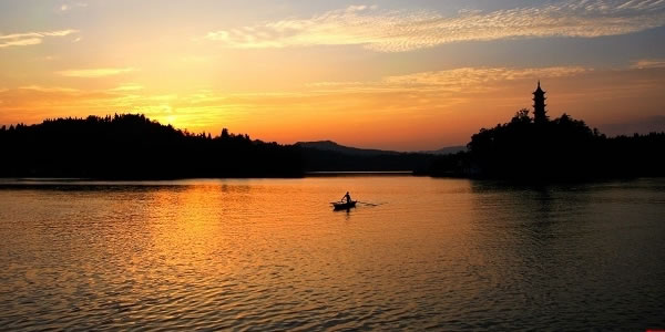 (1)川東西子湖——翠湖 出岳池東門11公里,就到了我市著名的風(fēng)景湖-岳池翠湖,即川北第一風(fēng)景湖。翠湖,原名響水灘水庫(kù),位于城北8公里。1959年開始動(dòng)工興建,次年8月大壩建成蓄水,蓄水量近170萬(wàn)立方米。后縣委、縣府充分利用自然條件,1983年將水庫(kù)興建為旅游風(fēng)景區(qū),因山清水秀,翠色可人而命名翠湖。"翠湖"二字由著名書法家李半黎書寫。有翠湖八景之說,即:玉帶長(zhǎng)堤、平湖嵐光、芳園秋月、溢流飛瀑、銀光倒影、龜山攬勝、龍華夕照、金城煙云。