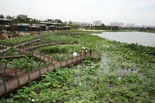 世界荷花博覽園景觀工程項(xiàng)目總投資8.4億元,占地面積為75公頃,其中堤內(nèi)外荷花種植198286㎡;堤內(nèi)外親水棧道6600㎡;堤外生態(tài)護(hù)坡12000㎡;堤外景觀工程185800㎡;光彩照明工程544959㎡;碼頭工程5處;環(huán)島堤帶路鋪裝49000㎡;環(huán)島堤帶路綠化8400㎡;上下閘門2座;島內(nèi)園路34000㎡;內(nèi)湖景觀橋2600㎡;景觀綠化376078㎡;古蓮水市工程4000㎡;內(nèi)湖廣場(chǎng)工程19524㎡;主場(chǎng)館工程30665㎡;停車場(chǎng)建設(shè)41032㎡;以及給排水、強(qiáng)弱電工程、島內(nèi)燃?xì)夤こ痰取=ㄔO(shè)期限為18個(gè)月。