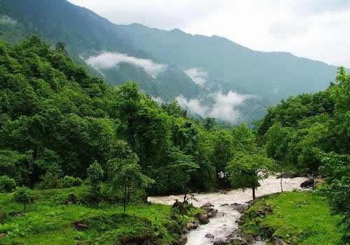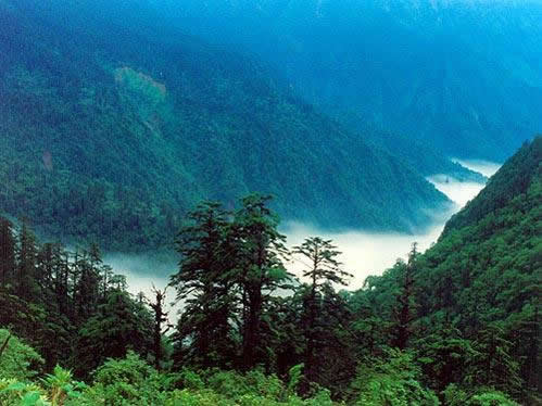 黑竹溝景區(qū)眾山群溝,60%是天然原始森林,25%是灌木叢林,15%屬高山草甸。森林公園內(nèi)自下而上出現(xiàn)常綠闊葉林帶(2000米以下)、針闊混交林帶(2000-2400米)、陰暗針葉林帶(2400-3600米)、高山灌叢的草甸帶(3600米以上)。常見闊葉樹種有大葉楠、香樟、木姜子、石櫟、絲栗、青岡、木荷等;落葉樹種有:槭樹、珙桐、連香、亮葉樺、紅樺、香樺、水青樹、楓楊、花楸等;針葉樹種有:鐵杉、云杉、冷杉、杜鵑花、箭竹等。
