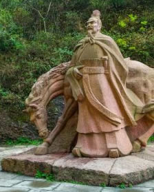 孔明立關像南,有尊雕塑是蜀漢先主劉備。劉備在成都定都以后,于建安二十二年(217年)設立了劍閣縣,隸屬于劍門關,加強了對劍閣的防守,以劍閣為中心,將漢中到成都的一千多里連成了一個整體,保證從成都至梓潼,穿劍閣過葭萌、白水,到陜西勉縣陽安關、漢中這條劍閣道的安全和暢通,為以后諸葛亮出祁山、姜伯約伐中原創(chuàng)造了條件打下了基礎。據(jù)有關資料記載,劉備在稱帝之前,就四次往來于劍門關,加上《三國演義》第六十五回敘述的劉備在進軍成都擊劉璋途中,又返回葭萌關看張飛和馬超廝殺,共往返六次之多。