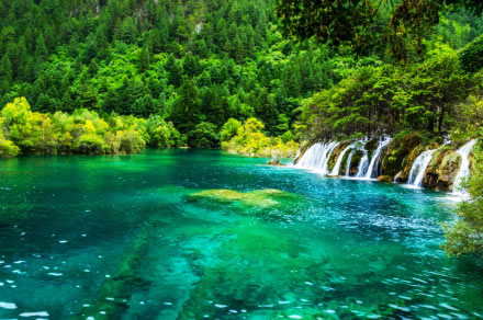 炎炎夏日,似火驕陽與粘濕汗水籠罩了整個大地,而此時的九寨溝卻截然不同。她掩映在整片整片蒼翠欲滴的濃陰之中,茂盛的林木守衛(wèi)著海子,歡快的流水梳理著樹枝與水草,一切都透著清爽。
