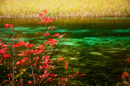 孔雀河道是從五花海出水口深谷里的一條河道。孔雀河道像是走在一副最濃烈的色彩創(chuàng)造出來的油畫里,又猶如孔雀羽一樣,將塵世間最美麗的藍和綠都融合在一起。