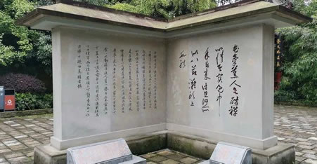 北宋著名詩人、書法家黃庭堅(jiān)謫居戎州時(shí),仿王羲之《蘭亭集序》“流觴曲水”之意,利用天然峽谷而建。池呈九曲形,立八石凳,引巖縫清泉為流,文人墨客列坐其間,可流杯飲酒,吟詩酬唱。此處巖壑清奇、古樹參天、意境清幽,為歷代文人雅士吟唱之所,是宜賓古八景之一。自宋迄今,詠贊之作繁多,或贊涪翁之高風(fēng),或頌筑池之勝績(jī),或發(fā)思古之幽情,或懷時(shí)令之感慨,可謂霧集云屯,珠璣累累,頗富時(shí)代氣息,風(fēng)采紛呈。一些詩詞歌賦在事后被勒刻于流杯池附近的巖、壑、洞、谷。據(jù)1985年統(tǒng)計(jì),計(jì)有石刻題記128通,字跡基本完整的有64通,最早的紀(jì)年石刻為宋淳熙戊申(1189)年所刻。劉光弟、張大千、黃賓虹、張愛萍等人的字跡也躍然壁上。