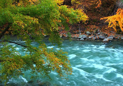 三千三百道溝,三千三百道梁,溝溝有紅葉,溝溝有融雪,溝溝有泉涌。山被紅葉遮掩,水被紅葉浸染,道被紅葉鋪成,一簇簇、一團(tuán)團(tuán)燃成米亞羅秋的火焰。雪山,溫泉,森林,紅葉,藏羌文化,構(gòu)成一個(gè)神奇的紅色夢(mèng)幻走廊。