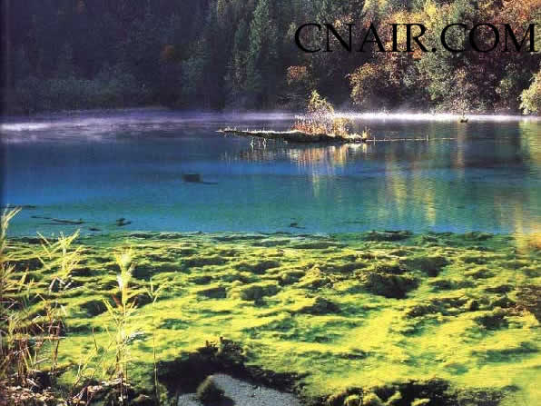九寨溝內(nèi),清清碧水倒映藍天,魚翔蒼穹,鷹擊水底,呈現(xiàn)出謎一樣的童話世界。