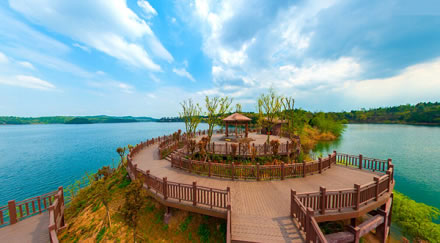 仙海親水棧道,臨湖而建,采用木、石等生態(tài)材質(zhì),融湖光山色于一體。起于雷耀酒店,經(jīng)水庫大壩,沿湖畔蜿蜒曲折,止于長虹研發(fā)園。首期全長約6公里,遠(yuǎn)看近看,宛如一條蛟龍,行走其間,宛如蛟龍入海。