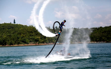在這里,您可以親身體驗風(fēng)靡歐美、驚險刺激的水上摩托、賽艇、香蕉船、滑水、水上飛人、水上自行車等運動項目;您可以在豪華舒適的游船上盡情領(lǐng)略神奇秀美的仙海風(fēng)光,享受愜意休閑的假日!