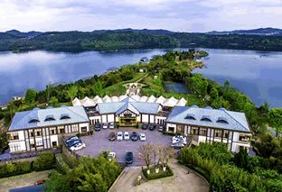 雷耀度假酒店位于綿陽市仙海旅游度假區(qū)天樞島,由綿陽嘉益集團(tuán)投資,臺灣著名公司設(shè)計的城市首席親水型湖畔度假酒店。酒店占地310多畝,一期項目擁有10棟湖畔水上別墅,共計40套湖景客房配置完善、舒適寬敞,所有房間可將碧藍(lán)遼闊的仙海湖景盡收眼底;酒店設(shè)有宴會廳、西餐廳、多功能廳、露臺餐區(qū)及12個自由組合分隔雅間可同時接待1000余人的大型婚宴及宴會,提供川菜、地方風(fēng)味、自助餐、燒烤和仙海湖生態(tài)魚宴等;酒店主樓及豪華游輪設(shè)有大、中、小型會議室5個,集會議、培訓(xùn)、展覽于一體;康體娛樂設(shè)施有網(wǎng)球場、羽毛球場、射箭場、垂釣、棋牌娛樂、KTV;酒店擁有仙海湖最大戶外婚禮場地和婚紗攝影基地,寬廣獨立臨湖大草坪可容納500人戶外草坪宴會;大型游輪碼頭擁有1艘大型游輪、3艘中型游輪和5艘各類小型豪華游輪,同時大型游輪日月潭號為您提供別具一格游輪婚禮。酒店所有客房、餐廳、會議室、戶外休憩區(qū)和大堂區(qū)域均覆蓋WF信號,客人可以免費使用。