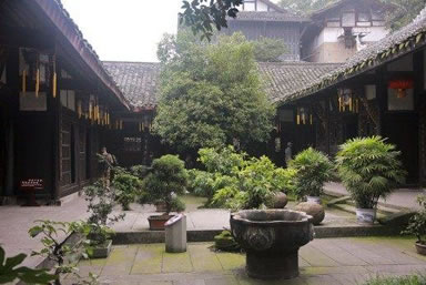 上客廳右方的沁園內(nèi)建有一座學(xué)館,是黃氏家族子弟讀書(shū)的地方。館前有一株高大的黃桷蘭,花開(kāi)時(shí)節(jié),滿園飄香。學(xué)館環(huán)境清清凈凈,芳菲沁人。