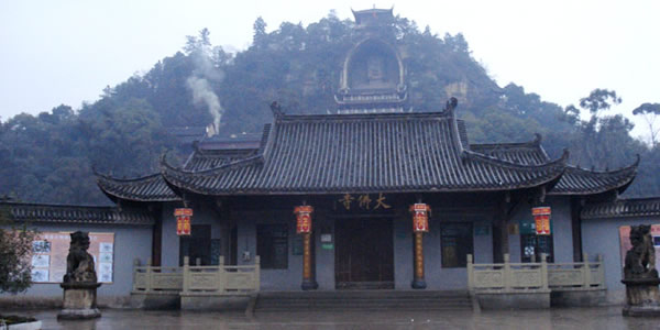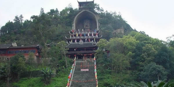 榮縣大佛:榮縣城東0.5公里有全國第二大佛——榮縣大佛,大佛寺內(nèi)半山之上,有一尊巍峨的石刻如來坐佛佛像,世稱榮縣大佛。大佛依山崖鑿成,通高36.67米,頭長8.76米,肩寬12.67米,膝高12米,腳寬3.5米,其頭部長8.76米,肩寬12.67米,腳寬3.5米。是一尊如來佛像,僅次于樂山彌勒大佛,為中國第二石刻大佛。 榮縣大佛開鑿于北宋元豐八年(公元1085年),完工于公元1092年,歷時八年始完工。大佛的頭頂上方有一道石條卷拱護(hù)罩,上刻“大開覺路”四字;崖頂上還有磚閣一座,遠(yuǎn)看像在戴在大佛頭頂上的寶冠!〈蠓痂徔掏旯ず,即修有殿宇保護(hù),根據(jù)《古今圖書集成》記載,時有“架殿十層,高四十七丈,闊十五丈”、“舊時寺門、抵今溪岸”?梢姰(dāng)時的恢宏氣勢,其后幾毀幾修,現(xiàn)存的殿宇為清代嘉慶、道光年間所建。1988年重建的大佛護(hù)身樓,是仿木仿古重檐歇山式建筑,既保護(hù)了大佛,又具游覽價值,逐層登樓近瞻佛容慈顏,從上到下盡觀大佛偉岸雄姿,鳥瞰榮城風(fēng)貌,眺望遠(yuǎn)山近巒。