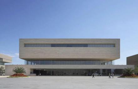 天津大劇院建筑設計立意為“城市舞臺”。由世界頂級建筑大師曼哈德 馮 格康親自擔綱,德國GMP建筑師事務所與現(xiàn)代設計集團華東建筑設計研究院聯(lián)合設計?偨ㄖ娣e10.12萬平方米,其中建筑本體8.5358萬平方米,地下設施1.5811萬平方米。