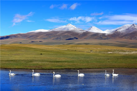 天鵝湖坐落在草原上,在新疆和靜縣巴音布魯克區(qū)政府約60千米的巴音鄉(xiāng)西南部。天鵝湖實(shí)際上是由眾多相互串聯(lián)的小湖組成的大面積沼澤地,這是中國第一個(gè)天鵝自然保護(hù)區(qū)。保護(hù)區(qū)水草豐茂,氣候濕爽。鳥類有128種,隸屬14目30科80余屬,其中雀形目53種,非雀形目75種;繁殖鳥95種,占74%,其中留鳥34種,棲息著中國最大的野生天鵝種群,是鳥類繁殖和渡夏的棲息地。獸類有20余種,其中,兩棲類2種,魚類5種。其中屬國家Ⅰ類保護(hù)的有8種,如雪豹、黑鸛、金雕、白肩雕等,Ⅱ級保護(hù)的有25種,如天鵝、盤羊、雪雞等。