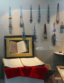 館中展出了在刀郎地區(qū)收集到的部分古老器物、錢(qián)幣、文牘、書(shū)籍,讓見(jiàn)證了物質(zhì)的刀郎;刀郎人古時(shí)勞作生活的塑像、古老的居室、用具、物品,則使通過(guò)時(shí)間的隧道,回到了古老的時(shí)代,與昔日的刀郎人對(duì)話。