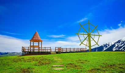 哈薩克語為草原會(huì)客廳,是古時(shí)候草原民族商量重大事宜的地方,現(xiàn)為景區(qū)河谷草原線路的綜合服務(wù)區(qū)。可供游客體驗(yàn)騎馬、射箭、民族服裝留念、古道馬車、草地摩托車、住宿、直升機(jī)觀景等娛樂項(xiàng)目、餐以及住宿服務(wù)。