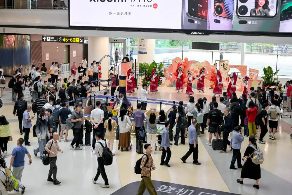 據(jù)介紹,圍繞營(yíng)造濃厚節(jié)日氛圍,成都雙流、成都天府兩場(chǎng)組織了“國(guó)慶76周年”童聲合唱快閃、“高效赴商途慢品小城韻”聯(lián)合營(yíng)銷、“山河錦繡·筆賦同欣”“禮樂(lè)賀國(guó)慶漢服迎中秋”等一系列主題文化活動(dòng)。通過(guò)節(jié)目展演、互動(dòng)游戲等形式增強(qiáng)旅客參與感與節(jié)日儀式感,并結(jié)合國(guó)慶元素與成都地標(biāo)、機(jī)場(chǎng)吉祥物進(jìn)行氛圍布置,充分展現(xiàn)了機(jī)場(chǎng)的服務(wù)溫度與文化內(nèi)涵。(成都日?qǐng)?bào)錦觀新聞?dòng)浾?楊富 供圖 四川機(jī)場(chǎng)集團(tuán))