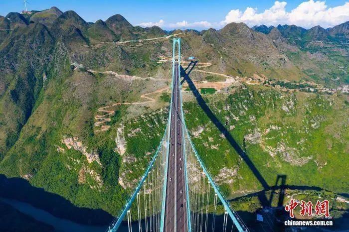 9月28日,世界第一高橋——貴州六枝至安龍高速公路花江峽谷大橋正式通車運(yùn)營。(無人機(jī)照片) 中新社發(fā) 龍建睿 攝