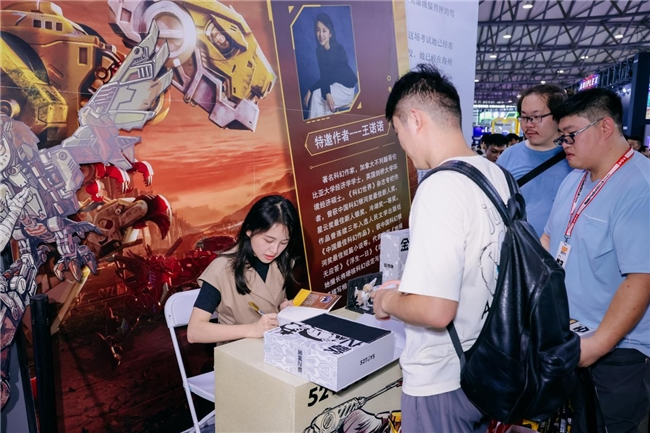 作為國創(chuàng)變形機(jī)甲代表性IP,猛獸匣(BEASTBOX)系列成為本次52TOYS展區(qū)的最大亮點(diǎn),產(chǎn)品和內(nèi)容成果頗豐。備受玩家期待的猛獸匣首部官方小說《猛獸匣:金屬之歌》珍藏版在展會(huì)現(xiàn)場超前發(fā)售,小說作者、曾榮獲中國科幻銀河獎(jiǎng)最佳新人獎(jiǎng)的科幻作家王諾諾親臨現(xiàn)場簽售。小說以其精美的裝幀與引人入勝的設(shè)定,迅速成為資深玩家與科幻愛好者爭相收藏的對(duì)象,現(xiàn)場等候簽售及購買的粉絲排起長龍。