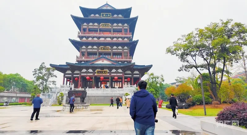 采風團一行循著長江岸線,在狄公樓探尋千年文脈(央廣網(wǎng)記者 周蓓 攝)