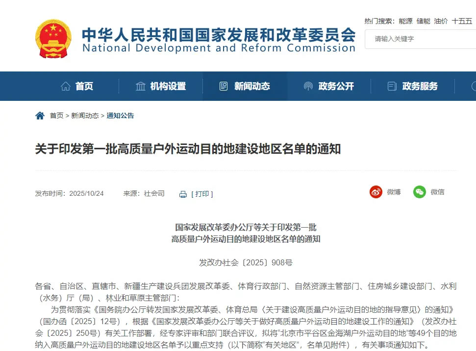 第一批高質(zhì)量戶外運(yùn)動(dòng)目的地建設(shè)地區(qū)名單