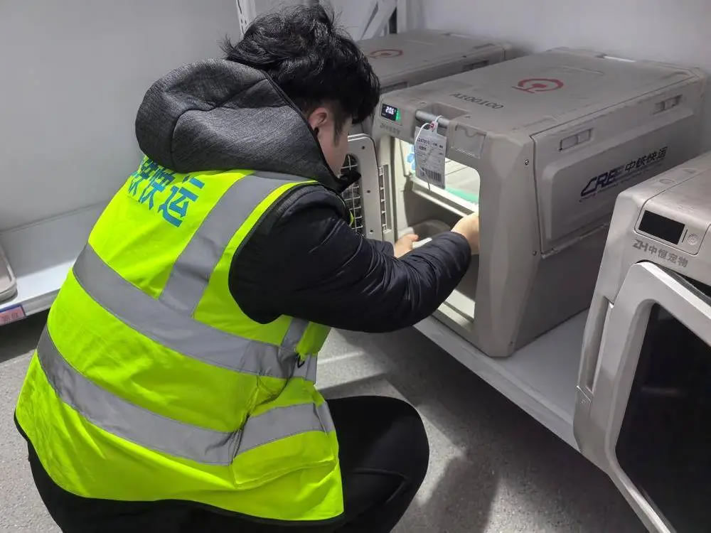 記者在采訪中看到,寵物被托運過程中,全程處于專用的運輸箱內。運輸箱放置在高鐵快運柜中,與旅客形成空間上的隔離。鐵路工作人員介紹,這種運輸箱自帶空氣循環(huán)系統,還帶有含氧量、溫度、濕度監(jiān)測裝置以及除味裝置,既讓寵物享受到專業(yè)呵護,又能保障其他乘客的乘車體驗。