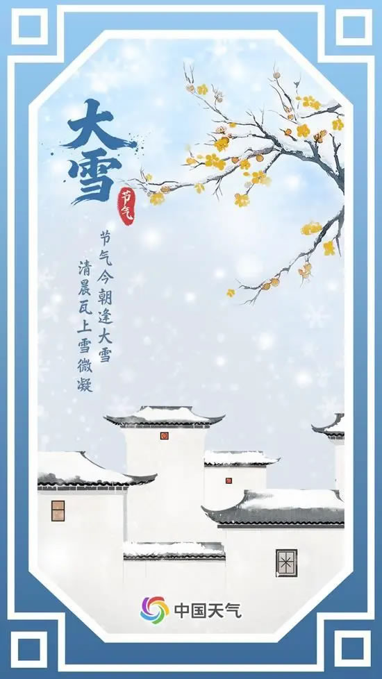 《月令七十二候集解》中記載:“大雪,十一月節(jié)。大者,盛也。至此而雪盛矣。”所謂“大雪”,并非指降雪量大于小雪,而是因氣溫進(jìn)一步下降,降雪或積雪的概率隨之增加。民間因此有“小雪不見(jiàn)雪,大雪滿(mǎn)天飛”之說(shuō)。