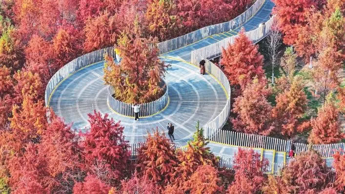 12月15日,漢口常青人才公園,大片火紅的杉樹(shù)林和空中觀(guān)景棧道完美適配,隨手一拍都是冬日美圖大片,成為市民熱門(mén)的打卡地。經(jīng)歷上一輪寒潮,武漢水杉、池杉、落羽杉齊刷刷變紅,紅杉進(jìn)入最佳觀(guān)賞期。 楚天都市報(bào)極目新聞?dòng)浾呃钶x攝