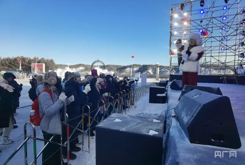 現(xiàn)場游客互動(央廣網(wǎng)發(fā) 漠河市委宣傳部供圖)
