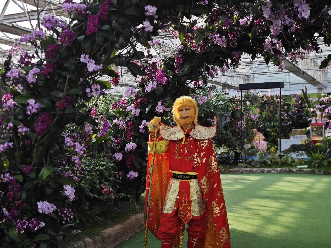 年輕群體則偏愛沉浸式互動(dòng)與休閑消費(fèi),園區(qū)針對(duì)這一需求持續(xù)更新體驗(yàn)內(nèi)容:古典舞樂演出增設(shè)互動(dòng)環(huán)節(jié),游客可即興參與;闖關(guān)游戲融入蘭花知識(shí),兼具趣味與科普;NPC互動(dòng)劇情不斷擴(kuò)展,身著漢服的角色穿梭于花廊之間,帶領(lǐng)游客解謎打卡;漢服攝影區(qū)提供多樣妝造與場(chǎng)景,成為年輕人拍照分享的熱門選擇。