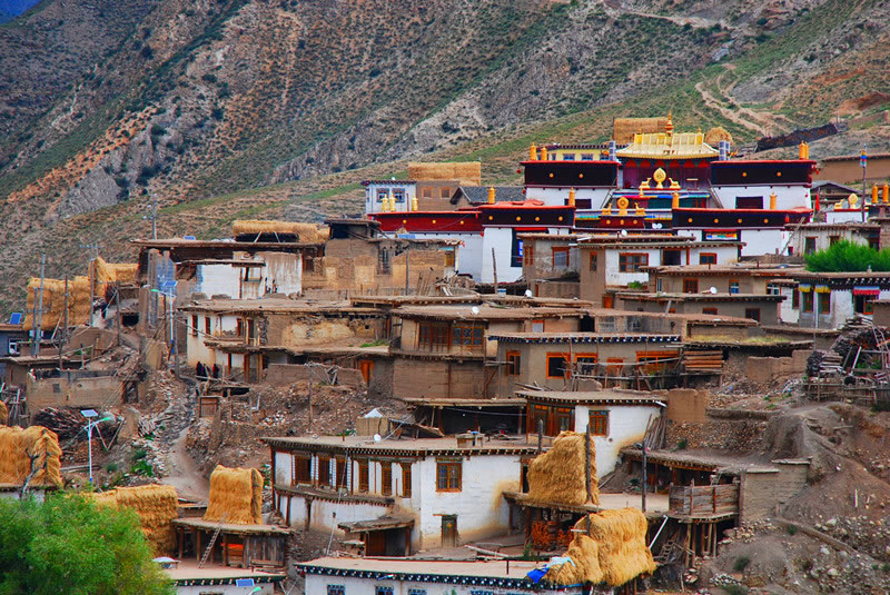 喪葬 一般為天葬,死者的家屬、兒女、親戚都不送葬,由天葬師為葬者修容整裝后抬上天葬臺(tái),將其分割后喂鷹。