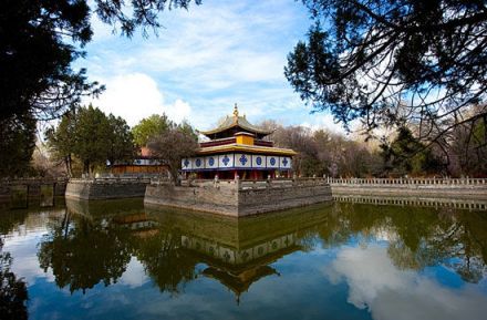 八世達(dá)賴(lài)在此基礎(chǔ)上擴(kuò)建了恰白康(閱覽室)、康松司倫(威鎮(zhèn)三界閣)、曲然(講經(jīng)院),把舊有的水塘開(kāi)挖成湖,按漢式亭臺(tái)樓閣的建筑風(fēng)格,在湖心建了龍王廟和措吉頗章宮(湖心宮),兩側(cè)架設(shè)了石橋。