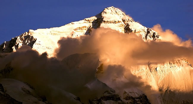珠穆朗瑪峰是世界最高大的山系喜馬拉雅山的主峰,海拔8,844.43米,為世界第一高峰。珠穆朗瑪為藏語的音譯,意為“女神第三”。山體呈金字塔狀,山上冰川面積達1萬平方公里,最長之冰川達26公里。山峰上部終年為冰雪覆蓋,地形陡峭高峻。是世界登山運動矚目和向往的地方。山間有孔雀、長臂猿、藏熊、雪豹、藏羚等珍禽奇獸及多種礦藏。
