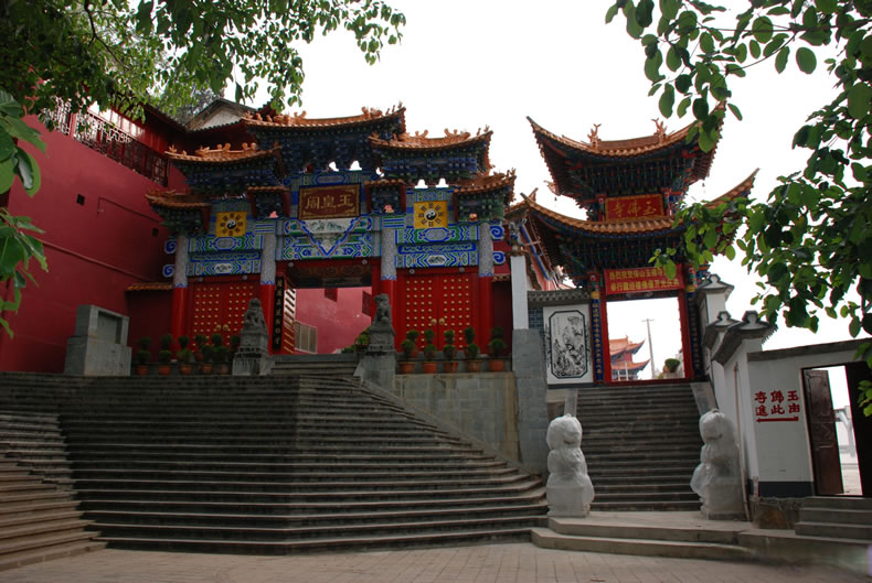 保山玉皇閣,位于保山市城西太保山上,是保山境內(nèi)規(guī)模最大,保存最好的道教建筑群之一。始于嘉靖二十八年(1549年),三十八年(1559年)落成開放。占地面積3399.2平方米,依地形而建,坐西向東,橫向布局為三個院落,分別為山門、三官殿、灶君樓。主體建筑玉皇閣居于整個建筑群的中央,由大殿及鐘、鼓二亭組成一個“品”字形院落。整個建筑氣勢雄偉,結(jié)構(gòu)精湛,裝飾華美,充分體現(xiàn)了封建社會帝王為尊、皇權(quán)至上的構(gòu)思主題,具有極高的史學研究和藝術(shù)鑒賞價值。 2006年5月,保山玉皇閣被國務院公布為第六批全國重點文物保護單位。