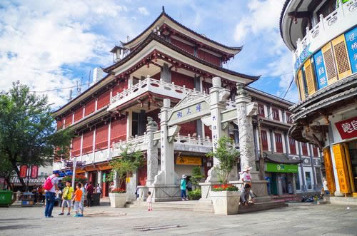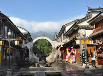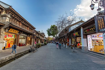 復興路是大理古城主干道和最繁華的街道,連接南城門和北城門,總長1500米,路面為麻塊石路面,是古城南北方向最長的主干道。復興路兩邊商鋪保持了民清時期的建筑風格,是大理古城主要商業(yè)街道。