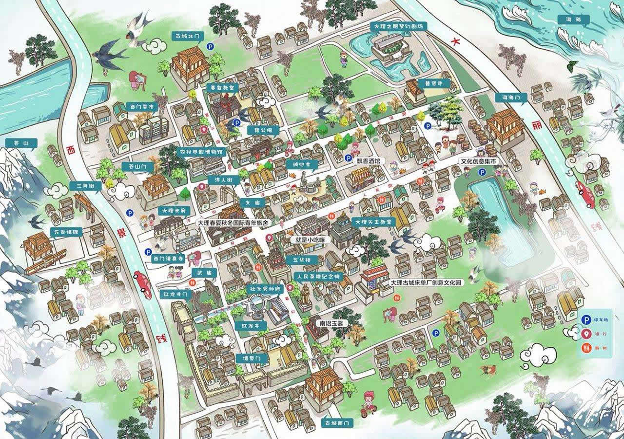 大理古城的古代風景營造經驗屬于特有的中國現代城市風景營造,將自然環(huán)境與人工環(huán)境相融合,形成了悠然從容的城市特點,使中國的風景格局具有民族性、地域性。