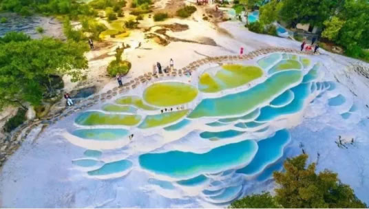 白水臺(tái)因碳酸鹽長年累月的沉淀,形成臺(tái)幔,好似層層梯田,故有“仙人遺田”的美稱,2022年11月9日,白水臺(tái)景區(qū)被確定為國家AAA級(jí)旅游景區(qū)。