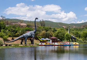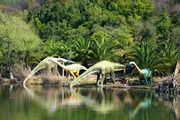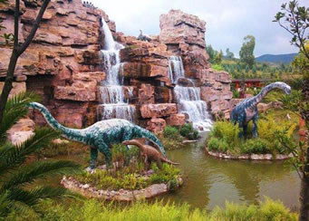 由“侏羅紀(jì)大瀑布”、“群龍對(duì)峙”、“腕龍相親”、“氣龍追逐”、“雙龍飲瀑”、“霸王龍窺獵”、“侏羅紀(jì)叢林”、“海棗之王”、“沙漠之林”等九大景觀真實(shí)再現(xiàn)了侏羅紀(jì)時(shí)代恐龍王國的生活場景,構(gòu)造出一個(gè)1億年前生氣勃勃、繁榮昌盛的侏羅紀(jì)世界,讓游客飽享一頓視覺大餐。