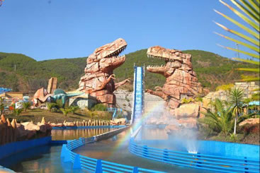 站在觀景臺(tái),重現(xiàn)在我眼前的是“侏羅紀(jì)世界”,侏羅紀(jì)世界是世界恐龍谷中最刺激、游樂項(xiàng)目最豐富的游覽區(qū)。自然的山谷地貌,瀑布、河流、湖泊,真實(shí)再現(xiàn)了侏羅紀(jì)時(shí)代恐龍王國的生活場景。