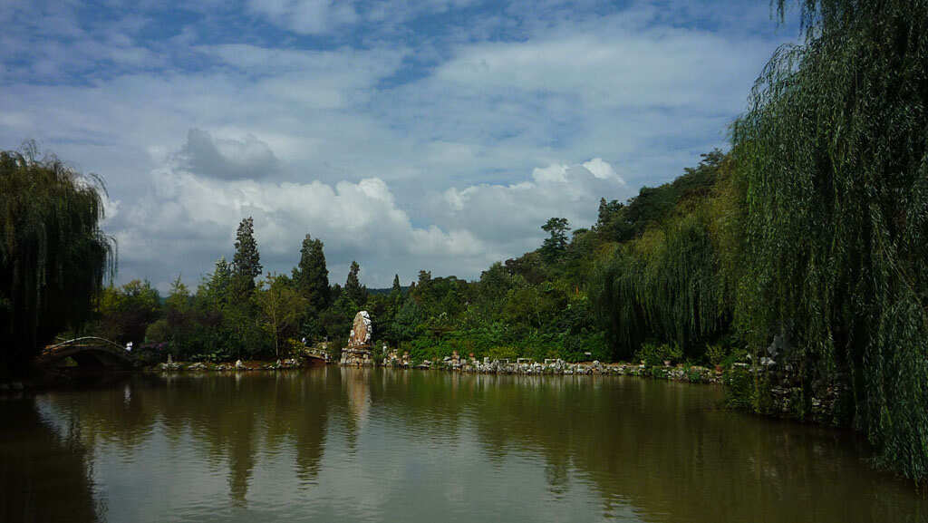白邑黑龍?zhí),位于嵩明縣白邑鄉(xiāng)龍?zhí)稜I(yíng)村南,旁修黑龍?zhí)端。始建于明代。存正殿三間,南北廂房各五間,南北配殿各三間,戲臺(tái)一座,財(cái)神廟一座。正殿前有一塊光緒皇帝題寫的匾額,上書“盤江昭佑”四個(gè)大字,右題:“欽命太子太保兵部尚書云貴總督部堂白山伊里布吉旦”,左邊落款是“大清光緒十三年季春月下浣日吉旦”,中有一璽印:“光緒御筆之寶”。白邑黑龍?zhí)度劬驮趶R中的龍?zhí)。潭分南北兩潭,北潭泉盛,注入南潭,潭底望去,呈青黑色,故名黑龍(zhí)。水從潭中涌出,形成小河,向南注入松花壩水庫?/p>