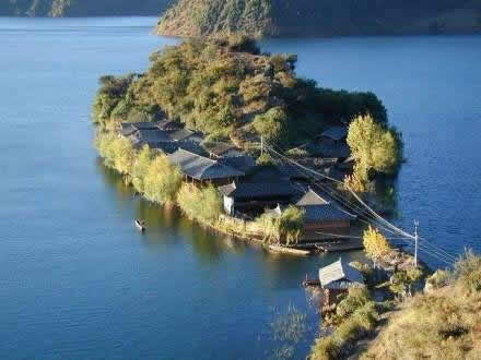 里格半島,位于東北部格姆女神山山麓,是瀘沽湖七個珍珠寶石般島嶼中的一個,與謝瓦俄島,里務比島一起被譽為“蓬萊三島”。