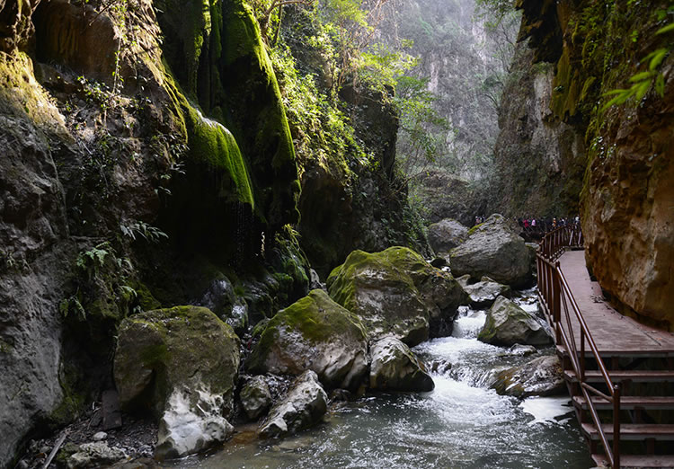 大地縫旅游景區(qū)位于縣城東南60千米的雨碌鄉(xiāng)。入口處稱“生命之門”。洞內(nèi)頂部呈弧形,有上億年巖漿形成的道道褶皺,當(dāng)?shù)厝朔Q“天花板”,長約20余米。過了天花板,但見青天一線,在綿延曲折的10余千米地縫中,兩山最窄處僅1.6米,最寬處不過20余米。