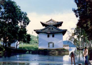 九苞鳳城,是指市區(qū)及城北的舞鳳山,土色粉紅,形同九頭丹鳳凌空翱翔。山溝梁王山的中支逼迫而來(lái),如鳳首覽輝,左右兩山其勢(shì)如同鳳凰展翅。澂江古城,城墻高一丈九尺,方圓五華里零三分,門(mén)樓巍峨,南北的大街如書(shū)軸,東西的房屋相連,如打開(kāi)的書(shū)卷,故有丹鳳銜書(shū)之稱。