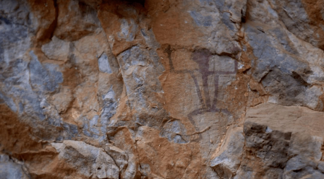 1985年發(fā)現(xiàn)的它克崖畫經(jīng)專家考證,成畫年代為距今三千年前后原始社會晚期,畫面描繪了古代人類的圖騰崇拜以及生產(chǎn)、生活情景,是少見的藝術(shù)珍品和研究古代人類社會的寶貴資料。崖畫位于青龍廠鎮(zhèn)它克村東北的扎營峰南麓。崖畫長19.5米,高3米,繪各種圖象92個(gè),畫用赭紅色畫成。崖畫之上200米,有一個(gè)水平溶洞,當(dāng)?shù)厝朔Q“陰賓洞”。洞內(nèi)高大寬敞,幽深,洞口向陽,避風(fēng),干燥,適宜穴居,推斷為崖畫人居住過。崖畫畫面反映的是人類對太陽、星星、天體、自然的崇拜和對人類始祖——母親的崇拜和性崇拜。 1987年12月被云南省人民政府列為云南省第三批重點(diǎn)文物保護(hù)單位之一。