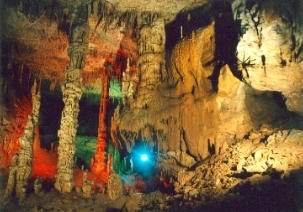 天臺山溶洞離縣城32公里,位于麟風鄉(xiāng)畢壩公路邊的老鷹巖上,具有宏、美、寬、多的特點。洞有四層,每層之間高差20~50米,互相貫通,各有廳堂,其中可開發(fā)利用3層。已探測的第二層洞面積64095平方米,長2138.2米。洞終標高1188.94米,其中:主洞長1264米,寬35米,高約25米;支洞深874.1米,寬25米,高18~25米。有10余個大廳,大者寬約100米,小者寬20~30米。洞內(nèi)次生碳酸鈣沉積物類型繁多,色彩絢麗,形成各異。單體、復合體共生,黃色、淡紅色、白色或無色透明石乳、石筍、石柱比比皆是,多以站立式、側掛式、懸垂分布式。