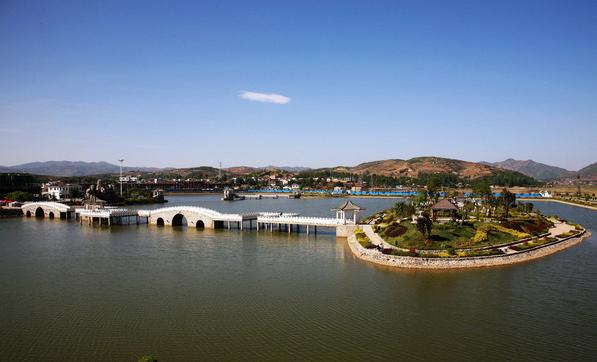 太陽(yáng)湖位于縣城南郊,東臨巧威公路過(guò)境線,西接鳴樓自然村,占地面積320畝。園區(qū)整體布局主要由水體湖面、小島嶼、環(huán)湖公路和商業(yè)區(qū)四個(gè)部分組成。太陽(yáng)湖呈蝴蝶型鑲嵌于城郊平壩中央,水體面積為16萬(wàn)平方米,湖面水深2.2米。湖畔有島嶼3個(gè),在島上設(shè)置了八角亭及長(zhǎng)廊等江南風(fēng)格園林設(shè)施,拱型廊橋?qū)⒐聧u與小島連為一體,形成湖中有島、小島四面迎水的秀美景觀。