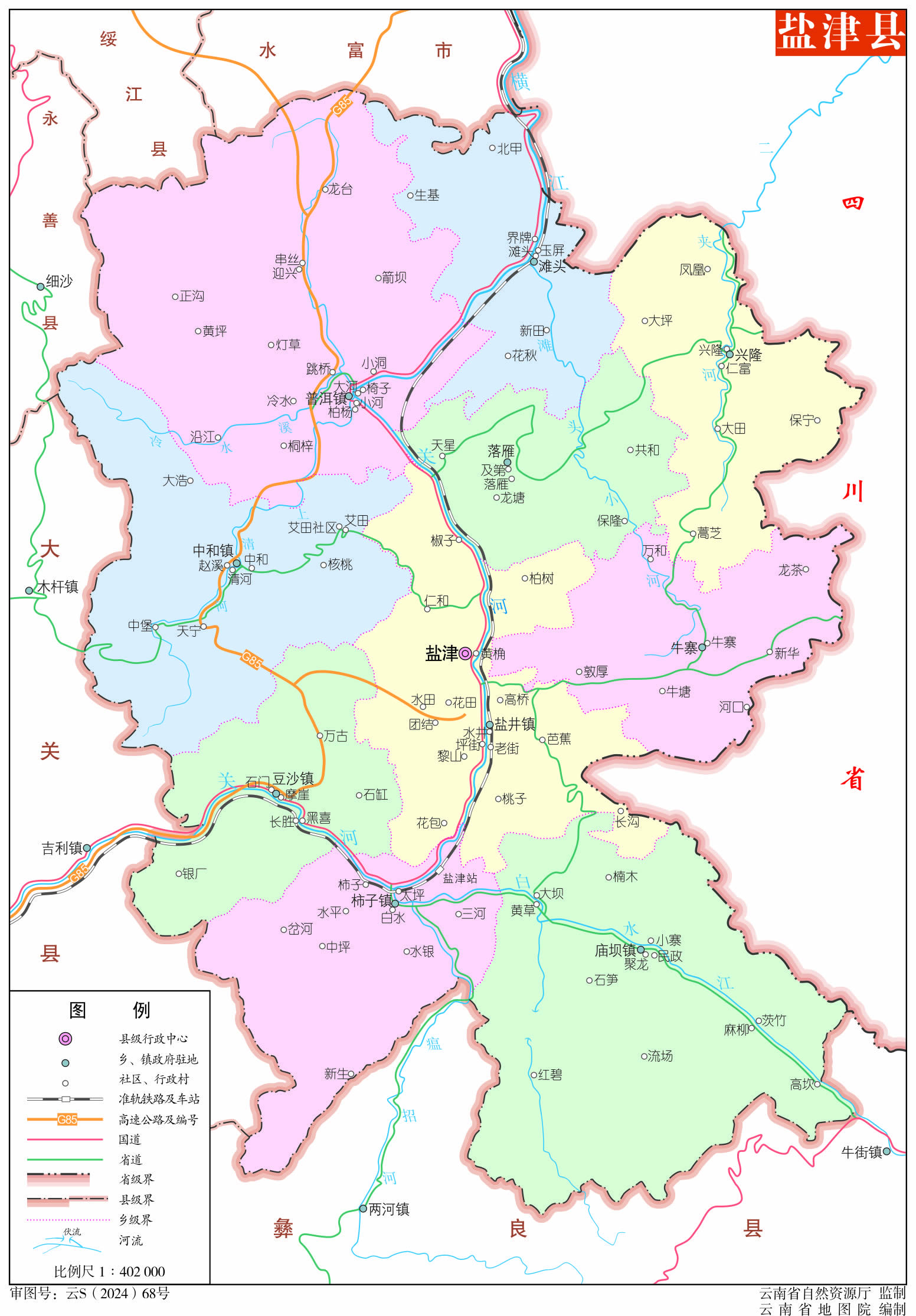 鹽津縣轄4個(gè)鎮(zhèn)、6個(gè)鄉(xiāng):