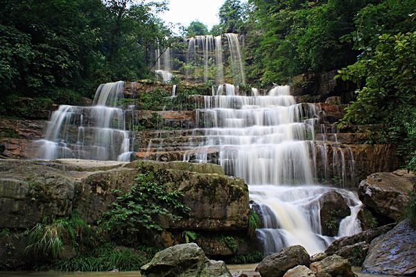 大關(guān)黃連河瀑布群距昭通市大關(guān)縣城5公里,有專線公路及中巴車直達(dá)景區(qū)。沿途山花爛漫、幽谷縱橫、清泉奔涌、鳥語花香。主要景點(diǎn)有仙女瀑、情郎瀑、少女瀑、月老瀑、鴛鴦瀑、洞房瀑、相思瀑、對(duì)歌瀑、姊妹瀑、銀鏈瀑、迎客瀑、壽星瀑、珠簾瀑及神秘莫測(cè)、千姿百態(tài)的白象洞,令人心曠神怡的水簾長(zhǎng)廊和使人銷魂愜意的大滑板等20多處。加上形似飛鴿的世界珍稀植物珙桐花,堪稱天下奇景。