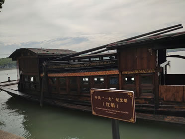 1921年7月23日,中國共產(chǎn)黨第一次全國代表大會在上海法租界望志路106號(今興業(yè)路76號)秘密召開。會議進(jìn)行至中途,遭法租界巡捕的襲擾而被迫停會。根據(jù)上海代表李達(dá)的夫人王會悟的建議,“一大”會議轉(zhuǎn)移到嘉興南湖的一條游船上繼續(xù)舉行。8月2日上午,“一大”代表毛澤東、董必武、陳潭秋、王盡美、鄧恩銘、李達(dá)、張國燾、劉仁靜、周佛海、包惠僧等,由李達(dá)夫人王會悟作向?qū),從上海乘火車轉(zhuǎn)移到嘉興,在南湖的一艘絲網(wǎng)船上完成了大會議程,宣告了中國共產(chǎn)黨的誕生。