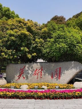 入口:入口道路寬十米,采用花崗石塊鋪設(shè),入口處立有一塊黃石,上面雕刻“英雄園”三個毛體大字,周圍為休憩花壇,花壇兩側(cè)種有龍柏。