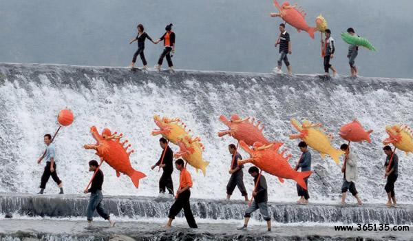 魚燈:是青田最傳統(tǒng)、最有代表性和地方特色的燈舞種類,也是浙江省魚燈類代表性的傳統(tǒng)民間舞蹈。青田魚燈歷史悠久,道具制作精美逼真,伴奏音樂鏗鏘有力,舞蹈動作粗獷奔放,表演風(fēng)格熱烈樸素。青田魚燈表演時以“紅珠”領(lǐng)隊,每人手舉一盞魚燈,頓時鑼鼓喧天,燈火輝煌,歡聲雷動,場面宏偉壯觀。目前,青田已組建了20多支不同流派、不同年齡、不同形式和不同風(fēng)格的魚燈表演隊伍。青田魚燈曾參加首都建國50周年慶典演出、第五屆中國國際民間藝術(shù)節(jié)、第七屆中國藝術(shù)節(jié)和第十三屆“群星獎”等國內(nèi)國際民間藝術(shù)交流,取得了優(yōu)異的成績,被譽為“天下第一魚”。