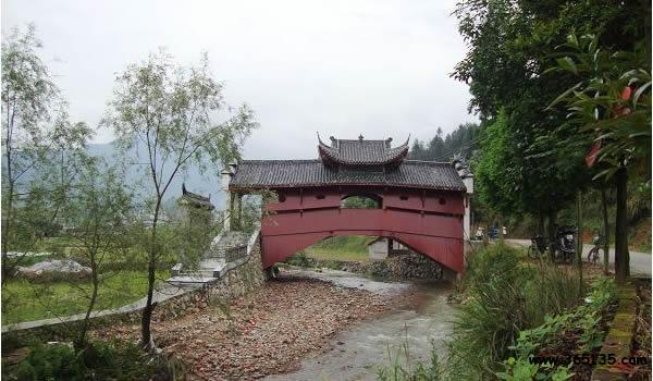如龍橋:位于慶元縣舉水鄉(xiāng)月山村南側(cè),橫跨于舉溪,呈南北走向,因其態(tài)勢(shì)與后山山脊的古松林依稀相連,橋似龍首下傾,故名。如龍橋修建于明天啟五年(1625),其結(jié)構(gòu)復(fù)雜,工藝精湛,功能完備,系迄今發(fā)現(xiàn)有明確紀(jì)年、年代最早的木拱廊橋之一。此橋建筑上頗具宋代遺風(fēng),目前在全國(guó)已屬少見(jiàn),具有很高的歷史、藝術(shù)和科學(xué)考察價(jià)值,為全國(guó)重點(diǎn)文物保護(hù)單位。
